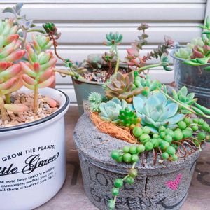 初めて育てて ↓ ベビーが生まれ ↓ チョンパ✂️ ↓ 寄植え まだ育てている 多肉さんの種類は少ないので、あるもので寄植え♡(o^^o) 母の日のプレゼントと一緒に渡そうとおもいます★ スグに大きくなっちゃうかな〜f^_^;