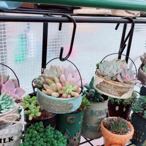 昨日作ったリメ缶に寄せ植え😊✨ 置き場所なくて掛けてます😂