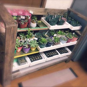 主人お手製の多肉棚完成✨冬越し対策で周りにプチプチとかやってくれるらしい… まだ置ききれてない子達をなんとかしないと💦
