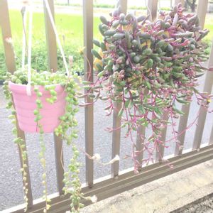 昨日の朝の水玉ショット📸✨ お花も白と黄で仲良く咲いてます🌼 ピチネの左の垂れてる2本のつぶつぶがほんのりピンクに色づいて💓 ルビネは紫に色づいてなんだかぶどう🍇みたいにおいしそう( ´艸`)