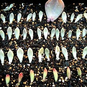 ぷりぷりです(*´艸`) 前はすかすかですが😭 でもよく見ると、ポロポロ落ちた葉っぱから芽が🎵 パープルさんって葉挿ししやすいのかな?