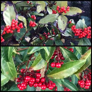 赤いプチプチ🍒 千両と万両です☺️ 葉の上に実がつく千両 葉の下に実がつく万両 どっちも可愛いですね❤️