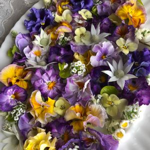 フリフリパンジーを今日は、白いお皿にのせてみました🎶次々と咲いてくれます😊