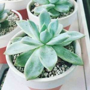 久々に新しくお迎えしたエケベリアちゃん…なんと瀕死なのです🌿🐦💦 が、「復活したら美人さんになる」予感がし、連れて帰って来ました。枯れた葉を除いて取り敢えず土と鉢を変えて水をやり…初心者下手糞でも巧く育つ土だし、なんとかなると祈ってます…赤い縁取りともふもふ感ある産毛がステキな子になると思うんです。🌸🐦 にしても、土もカラカラ日陰に放置、名札すらないなんてひどいですよね…名前を知りたいのでどなたかご教授頂ければ嬉しいです。