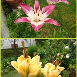 庭のユリです。アプリコットファッジは更に咲き進みました(o^-^o)🎶 スカシユリも飾り気は少ないですが、ソコがまたイイと思います💠