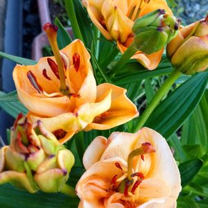 3日前に、 アプリコットファッジの写真を 投稿している方がいました。 それを見て、『とっとり花回廊』で見た、この花のことを思い出しました。 チューリップみたいな形だけど ユリです。 ①〜③とっとり花回廊で見た アプリコットファッジ 🏷日曜ビタミンカラー♪ 🏷16日はイエローの日