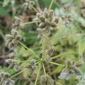 丘陵地などで あちこちで見られる この植物 ヤブジラミ やぶに生え刺毛がある果実が衣類にくっつくのをシラミにたとえたもの 🔍したら葉や花が紫色を帯びるのは、オヤブジラミの様です。 1️⃣は5/10に見たお花 昨日見たのは、3️⃣の果実 刺毛が生えていてひっつく。 4️⃣は、ヤブジラミ 花は、白い セリ科ヤブジラミ属 越年草