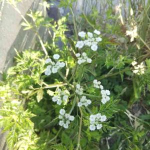 昨日の帰り道で見かけた花です 葉っぱは人参の葉に似ています 小さい小さい花🌸 名前教えて頂きました。セリ科の植物のようです。ありがとうございました😊
