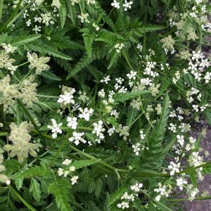 藪虱(ヤブジラミ) セリ科ヤブジラミ属の越年草。野原や道端に生える。葉は長さ5〜10㎝の2〜3回羽状複葉。小葉は卵状披針形で、細かく切れ込み、両面とも粗い短毛が密生する。花期は5~7月。枝先に小型の複散形花序を出し、白色の小さな花をつける。小花柄は4〜10個。総苞片は細長い。果実は分果。長さ2.5〜3.5㎜の卵状楕円形で、全体に刺状の毛が密生する。『ひっつき虫』のひとつで、毛はカギ状に曲がり衣服などによくつく。果実は熟すと2つに分かれる。手で潰すと特異な香りがする。夏が過ぎて秋になると、この香りが少なくなる。 藪に自生し、果実がシラミに似ていて服に付きやすくわずらわしいことが名前の由来。 漢方原料の蛇床子(ジャショウシ)は中国ではオカゼリの成熟果実。名前の由来は、蛇がこの植物の下に好んで住み種子を食べるからと『本草綱目(ほんぞうこうもく💬1596年に刊行された中国の本草書)』にある。日本ではヤブジラミの成熟果実のことで、和蛇床子という。 よく似たオヤブジラミとの違いは次の通り ヤブジラミ ・花期は5〜7月 ・花は白色 ・茎は緑色で毛に覆われる ・果実の柄が短く、果実がひとかたまりに見える オヤブジラミ ・花期は4〜6月 ・白い花弁の縁が紫色を帯びる ・茎はふつう紫色で毛に覆われる ・果実の柄の長さが不揃いなので、まばらに見える ・果実がヤブジラミより大きく紫色で刺が長い 出典『野に咲く花』『草木の種子と果実』『野草 見分けのポイント図鑑』『薬草の呟き』