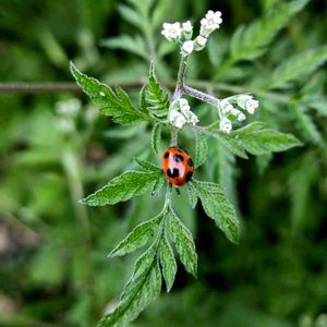 ヤブジラミ ヤブジラミについたアブラムシを食べに テントウムシがやってきました
