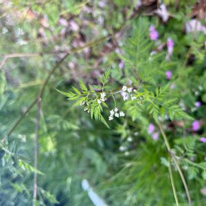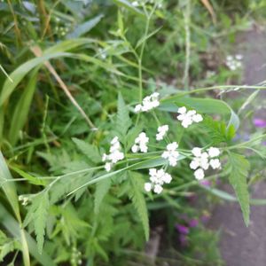 ヤブジラミ セリ科ヤブジラミ属 越年草 日本全土、台湾、朝鮮、中国、アジア、ヨーロッパ、モロッコ原産 花期 5-7月 花は子房を含んで長さ約4mm、花柄は約2mm。 花は直径約3mm。 果実は長さ2.5-3.5mm