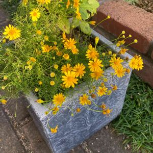 アシュレイの鉢に寄植えを作ってみました 初心者感満載🤣 中間のお花が欲しいとこだけど 狭くなるので暫くはこのままで楽しみます 寄植えの勉強がしたいな😆