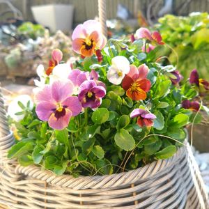 7.2℃🌅/17℃🌦️🍃 バスケット寄植え📝 🧺pic1〜3 *ゲブラ mixビオラ *夢紡ぎ 🧺pic4 *ローダンセマム マーズ *イングリッシュデージー ライトブルー *ヘデラ ニューミニシルバー ぼちぼちとお花が増えてきました. ݁₊᪥⋆. ݁♪