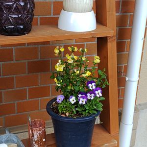 一月前に作った寄せうえ。 置き場に困って、玄関ポーチのラダーに置いてみたら🎵ピッタリのサイズで気に入りました。☺️