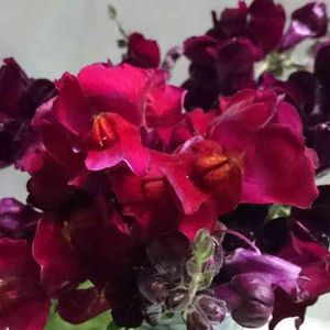 庭で摘んだ金魚草二種類、花瓶に飾りました🎵