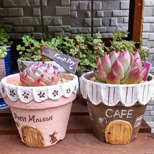 カントリーハートさんのプチメゾン鉢☕🍞 右側のCafe鉢も可愛いかったけど❤️☕ ピンクも可愛いよ(◍>ᴗ<◍)♥️ コロンとしたモンローxエアケアをinしたよ😍