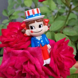 🏷ペコちゃん祭り🍬 参加しま~す(◍>ᴗ<◍)🍭 この薔薇さん赤に見えるけど✨🌹 ホントは濃いピンク色してて写真では上手く撮れないよ~🤣📷 名前も何だったけー😂 アメリカンペコちゃん💙❤️🇺🇸 上手く薔薇の上にの乗ってくれましたよ🥳🌹