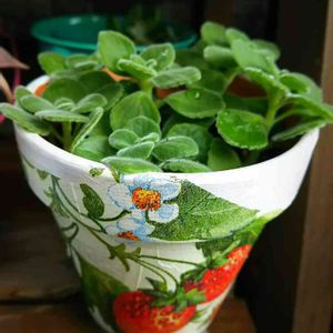⛱毎月15日はいちごの日🍓 参加しま~す٩̋(๑˃́ꇴ˂̀๑)♪ デコパージュした🍓の鉢にアロマティカスをイン🍀 朝晩は涼しくなってきたし… そろそろ多肉狩りしたいなぁ٩(๑> ₃ <)۶♥