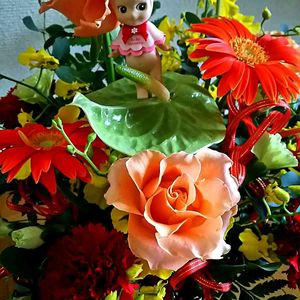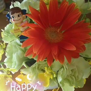 ꉂペコちゃん祭り🍬 ꉂハロウィン月間🎃 参加しま~す٩(๑> ₃ <)۶♥ ペコちゃんとオレンジ色のガーベラが似合ってたので…✨ お誕生日に頂いたアレンジメントを綺麗な所だけアレンジしてみました✨ 前に撮っておいたんですよ(*ˊ艸ˋ*)ウシシ ここからは私の呟き… 昨日は木枯し吹いて寒かった💦 そんな中、主人が多肉の鉢が割れた💧 え~😱 寒かったしー気持ちまでへこんだよ😢 これから片付けして来ま~す😓