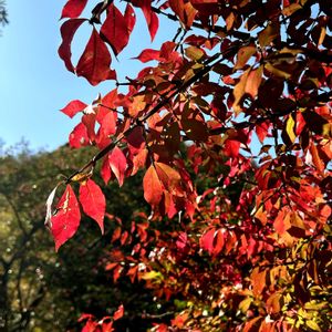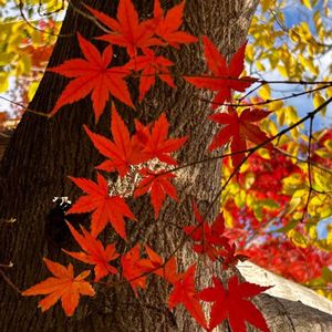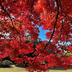 色んな紅葉(コウヨウ)🍂🍁 1️⃣モミジ🍁 山のもみじは下の方より一層赤く色づいています 🎶真っ赤だな🍁真っ赤だな🍁つたの葉っぱが真っ赤だな🍁紅葉の葉っぱも真っ赤だな🎶という歌が頭の中に浮かんでくる程、かなり真っ赤なもみじ🍁です 2️⃣もみじの絨毯(じゅうたん) 赤い紅葉の葉は散ると基本は赤紫色ですが微妙な色合いの葉の違いが綺麗です 3️⃣メタセコイア並木 4️⃣5️⃣ナンキンハゼ(南京櫨) 南京櫨の大木は今は葉を落として白い実が雪のようになっていました 裏紅葉のように裏から撮ると陽の光が当たって鮮やかに映ります