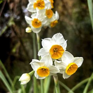今日のお花 スイセン💛🤍💛 水仙 ヒガンバナ科 スイセン属 1️⃣ニホンスイセン(日本水仙) 2️⃣キズイセン(黄水仙) 3️⃣フサザキスイセン(房咲き水仙) 4️⃣ラッパスイセン(喇叭水仙) 5️⃣ナルキッスス.オータムジュエル 原種水仙の交配種 花弁は細く、花色はグリーンに近い黄色 🍀属の英名はナルキッススで、ギリシャ神話に登場する美少年のナルキッソスに由来しています 彼は水面に映る自分の姿に恋焦がれ、最終的に水仙に形を変えたとされる ナルシストという言葉もナルキッススが由来で、自己愛が強い人を指す言葉として使われるようになりました ナルシストとは自己中心的で、自己陶酔的な人を指します。 自分の欲求を優先し、他人からの賞賛や注目を求める傾向にあります これからスイセンの花を見たら、彼の名前が浮かんできそうです 水仙の花期は12〜4月頃なので、まだ咲いていなくて、去年のものです