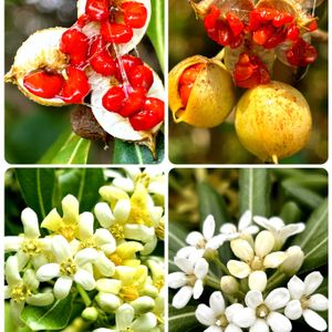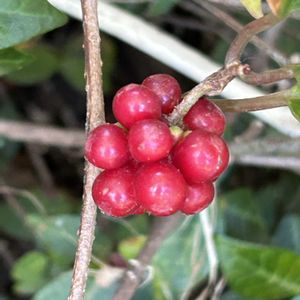 実りの秋 お花を振り返って🎶 1️⃣センリョウ(千両) 2️⃣サオトメバナ(早乙女花) 別名 ヘクソカズラ(屁糞葛) 3️⃣ヤブニッケイ(藪肉桂) 4️⃣マサキ(柾木) 5️⃣テイカカズラ(定家葛) 実と花をセットで、咲く場所を覚えておくと、それぞれの時期に両方見る事ができますね❣️ 花と実のギャップが大きいです❣️ 実は今の時期です