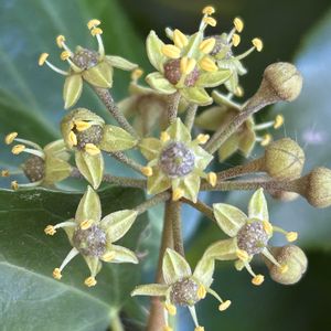 湖岸のお花 お花が少ない時期に寒くても元気に咲いているお花 1️⃣キヅタ(木蔦) 2️⃣ヒイラギ(柊) 顔を近づけると微かにいい香りがします 3️⃣アジサイ(紫陽花) 6月からずっと咲いている山の紫陽花 4️⃣シロダモ 雄花、雌花、一年前のお花の実が同時に見られます 雌雄異株 5️⃣ハナゾノツクバネウツギ(花園衝羽根空木) 別名 アベリア 花後に残る赤茶色の萼片が綺麗に紅葉しています それがツクバネ(昔のお正月の遊びで、羽根突きの羽根)に似ていている事ですが、今の子供には分からない遊びですね 花がずっと咲くので、花園