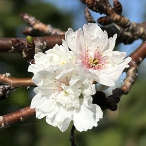 今日のお花🌸フユザクラ(冬桜)🌸 本州を原産とするバラ科の落葉高木 一般的にはヤマザクラとマメザクラが自然に交配してできたものとされ、伊豆半島と房総半島には自生も見られる 主な開花期は10時〜12月.3〜4月と年2回であるが、その間もずっと咲き続く 冬に咲く桜は他にもジュウガツザクラ、カンヒザクラ、カンザクラ、コブクザクラなどがあり、これらを総称してフユザクラと呼ぶこともある 冬に咲く花は全体の1/3残りは春に咲く ジュウガツザクラの花弁はやや細め、フユザクラの花弁は太めの様です 花は咲き始めは少し薄桃色で後に白色になる様です フユザクラは一重、ジュウガツザクラは八重が多いそうです 1️⃣2️⃣コブクザクラ(子福桜) 一つの花に実を2〜3個付けることが名前の由来 10月から断続的に点々と花をつけています(湖岸) 広義のフユザクラで、花弁の一部が薄桃色で時間と共に芯が赤くなってくる 3️⃣花弁の広さからするとたぶんフユザクラ 4️⃣5️⃣10月頃に山に咲いていた花で今は咲いていません これはジュウガツザクラだったのか? 判断が難しいです