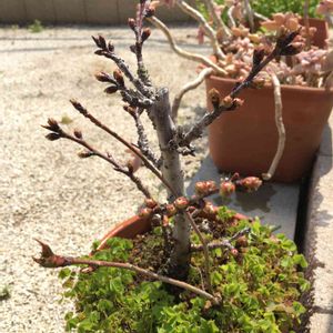 ちょっと見にくいですが…2年目の1才桜の 蕾が一気に膨らんできましした😆 早く咲かないかな〜🌸楽しみです😊