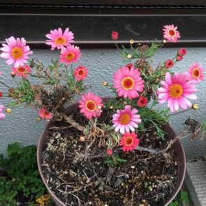 昨年弱った状態で我が家に来たマーガレット さん。葉が中々茂らずボロボロだけど、 見事に花をたくさん付けてくれました😊🌸