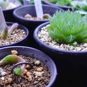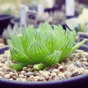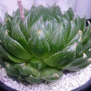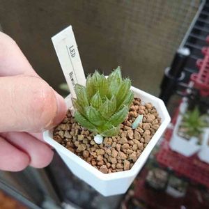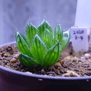 ハオルチア エメラルドLED 2020春の搔き子で、直径は4cmくらい。 12cm超えて3.5号鉢にでんと座る親株は色も濃くなり、なかなかの迫力だけど、 この位のうちは葉が薄いせいか色も鮮やかで可愛らしく、お気に入りです。
