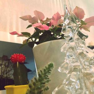 赤サボテンのテン子ちゃん「ママッ❗️その子 誰ッ⁉️ ママに抱っこして〜って言ってるトゲトゲの子💢」 ガラスのママさんツリー「この子 あなたの妹よ、カスミちゃん。仲良くしてやってね」 テン子ちゃん「えっ⁉️ いもうと❓ ‥‥いつのまにッ❓ 知らない‼️ そんなトゲトゲの子 知らないッ💢」 ママ「テン子ちゃんはお姉ちゃんなんだから、優しくしてやって」 テン子ちゃん「ポインセチアさんは 知ってたのッ⁉️ あたしだけが知らなかったってこと⁉️ そんなの許さないんだから💢」 ポインセチアさん「テン子ちゃん ヤキモチ妬いてるのね。ママを取られると思ってんでしょ❓大丈夫 ママは あなたのママなんだから」 ママ「そうよ テン子。ママはガラスだけど、あなたのママなの。カスミちゃんはトゲトゲだけど、あなたの弟なの。わかるわね❓」 テン子ちゃん「え❓‥‥おとうと‥なの❓妹じゃなかったの❓ ‥わかんない‥わかんないわよーッ‼️ママのバカーッ‼️ ウワァァ━━━。゚(゚´Д`゚)゚。━━━ン!!!!」 ポインセチアさん「むずかしいお年頃だものねえ‥認めたくないのよね‥わかる‥ウンウン‥カワイソウニ‥( ᵕ_ᵕ̩̩ ) 」 おわり 〜クリスマスに向けて〜赤サボテンのテン子ちゃんとガラスのママツリー 第ニ巻〜 たぶん続かない *第一巻を見逃した方は12月2日の投稿へお越しください