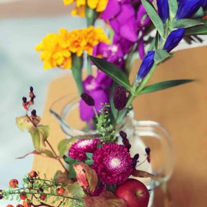 10月になったのでハロウィンぽい色合いで買ってきた! 手前のは店員さん作ミニ花束💐 後ろのは映画リメンバーミーをイメージしてチョイス🎃🌟 マリーゴールドは外せません笑