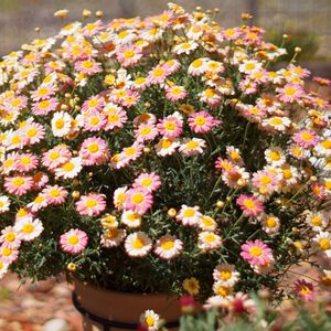サントリーフラワーズ ボンザマーガレット ピンクレモネード 植え付けから2ヶ月です。 花数増えてきて可愛くなってきました🫶