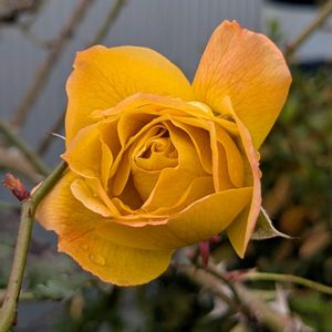 地域猫たちのお世話仲間であるご近所さんに頂いた棘なしの薔薇チャン🌹 10センチ程の大輪咲きの種類のよう。名前はわかんないです(-.-) いよいよ寒くなって、最後の蕾が可愛く咲いてたので🤳