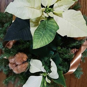 ①白いシクラメンも綺麗ですねぇ~✨️🤍 ②お庭のお花を玄関に飾りました✨️💛🩷 ③④⑤クリスマスツリーとキラキラベアー✨️🧑🎄🎄🧸