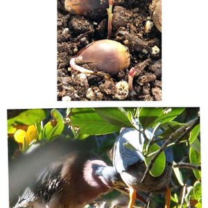 10月13日に植えたドングリが順調に育っています。 裏庭のマングローブでササゴイ親子