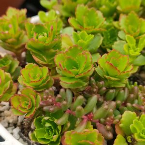 こんばんは😊 お迎え記録です。 先日、相模原にある多肉植物の店「リッシュ」さんに行ってきました。 今、インスタで「売れる多肉屋さん勉強会」というのをやっており、それで知り合ったのですが… これからセダムを生産されるということなので、仕入れの相談や情報交換などをしてきました。 現在、いちかわふぁーむさんのセダム塾に行かれているそうで、いろいろ有益な情報交換ができました! 右ふたつは、リッシュさんで購入させていただいたもの。 真ん中 ★アルブム テレティフォリウム けっこうレア!なセダムです。 いちかわふぁーむさんの動画でしか見たことがありません。 秋冬は粒がふっくらして、赤く紅葉します。 見た目はまあ…、普通のアルブムですけど(笑) これも他のアルブムと「混ぜたらあかん」種類ですね~。 右 ★琴爪菊(きんそうぎく) 別名「デルトイデス」 オスクラリア属…初めて聞きましたよ? これもメセン(ハナミズナ科)だったんですね! ピンクの菊のような花が咲くようです。 以前から木立のフォルムが気になっていたのですが… なんかデカくて邪魔かも…と思って買わなかったという。 これは鉢が小さい(1号ポット)せいか、かなりコンパクトに育っています。 このまま小さめの鉢で育ててみたいですね。 耐寒性、耐暑性もあって放置気味でも大丈夫らしいです。 でもやっぱりお水好きなんですね~。 そのあとに寄ったカインズで買ったのが、左の「セダム レフレクサム」です。 いや、ラベルにはそう書いてあるけど、セダムじゃないんですけど…、(笑) ★ペトロセダム属 レフレクサム 以前はセダムでしたが、最近ペトロセダム属に転属しています。 私は「レフレクサム系」をコレクションしているのですが、その基本種のこれを持ってませんでした! たぶんこれ、若干ですが徒長してますね~。 うちにある「ブルースプルース」に似ていると思います。葉色が違いますが、たぶんめっちゃ増えるタイプですね~。