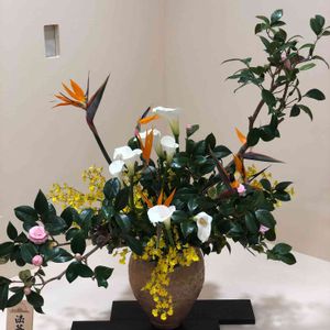 おはようございます☀️.° こちらも、龍生派の作品とても個性的なお花ですね、何というお名前なんでしょう? ご存知でしたら、 教えて下さい🙇♀️