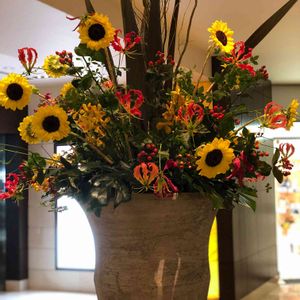 10/20(日)① 10/18.10/19に三軒茶屋キャロットタワー🥕ロビーで行われていた小原流世田谷支部の生け花展。 朝、仕事前にぐるっと回って見てきました🤗🎵 そのうち、みどりのまとめに「生け花」も作りたいと思います。まだ相模原公園温室のサボテン編集途中です😅💦 赤いグロリオサを丈の違う細い花器に入れて並べたシンプルだけどインパクトある生け花には「偲ぶ」というタイトル 印象的でした!!