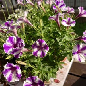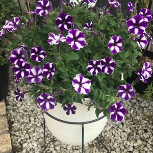 おはようございます😃 今日も良い天気☀️☀️☀️ 頑張っていきましょう✨✨✨ PWさんのペチュニア ブルーベリージャム🫐🫐🫐🫐🫐🫐🫐🫐🫐🫐🫐🫐🫐🫐🫐🫐🫐 満開になってきました。 摘芯なしで花殻摘んだくらいです。 暖かくなってからどんどんもりもりになってきました💜🤍💜🤍💜🤍💜🤍💜🤍💜🤍💜🤍💜