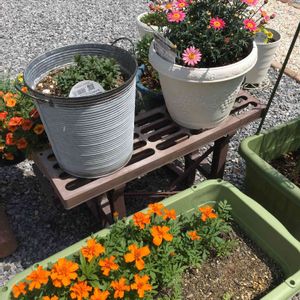初めて、おしゃれなブリキ缶に植えてみました、PWのブルーベリージャム。1ヶ月くらいたったかな?成長はおそいですがもりもりしてきました。 となりもPWのマーガレットプチホイップです。どれも名前がかわいい…おいしそう😍 こちらも1ヶ月くらいかなあ 暖かくなってどんどん成長しています。 下のマリーゴールドは去年コンパニオンプランツとして活躍したマリーちゃんの種をばら蒔いたら何もせんでも花が咲いてくれました🌸マリーゴールド強し。 今年はこのマリーゴールド第2世代で、今年のお野菜のコンパニオンプランツとして活躍してもらう計画です!本当に、アブラムシ少なくなる気がします。