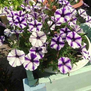 モニターご報告٩( 'ω' )و 昨年頂いたカインズさんのペチュニア ラズベリージャムとブルーベリージャム 両方こぼれ種で今年も咲いてくれてて(*´∇︎`*)うふ♪︎.*:・'゚. ブルーベリージャムの方は 白と紫のツートンカラーが 突然変異で真っ白 突然変異って面白い☺️💜 2年目も楽しませてもらってます ✧︎*。٩(ˊωˋ*)و✧︎*。