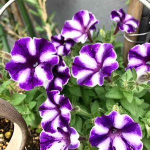 ペチュニア ブルーベリージャムのお花です🌼 うつくしい😊😊 カインズさんのシリーズですが、葉っぱもお花も厚みがあり、普通のペチュニアよりも雨風に強く、ナメクジなどの被害も少ないです。