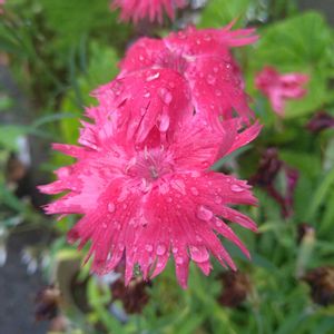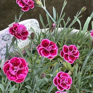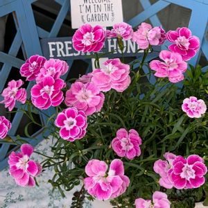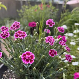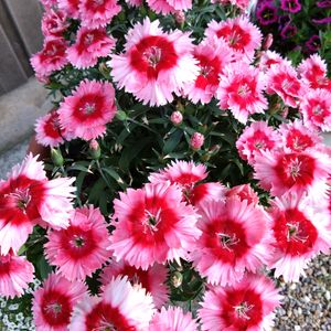 ダイアンサスがやっと満開になりました 秋に市の文化祭で4ポット300円の破格で購入 鮮やかに咲いてます。