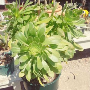 今年はアエオニウム カナリエンスがとても賑やかです(^^) * 挿し芽して大きくなったこの子 グリーンの花束みたいで、ほんっとにかわゆいの♡
