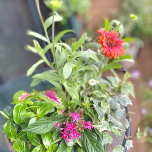 5月20日に作った寄せ植えのガイラルディアが咲きました。オレンジのパンチのあるお花❤️ ペンタスも濃いめのピンクで、コリウスの葉っぱもピンク強めで、全体的に力強い夏仕様な感じです。 自分ではなかなか選ばない取り合わせが、とても参考になります❣️ 寄せ植えのの時に、気になるのは、全部が同じ時期に咲き揃うのか〰️〰️なのですが、左端のビンカがまだつぼみちゃん。 ただ今、作って2週間ですが、見頃を見落とさないように、見守っていきまーす❣️