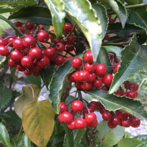 おはようございます😊 万両の実。 小さな丸い実を、たわわに成らせた姿を 縁起物として、お金が沢山貯まった様子に、たとえたもの。 万両の実は、葉っぱの下にぶら下がります。 千両の実は、葉っぱの上に まとまって、 乗っています❣️