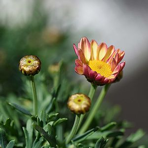 鉢植えボンザマーガレット (3/28) チェリー(挿し芽) 🌱🌸🌱🌸 かなり暴れ気味ですが、開花が進んでいます。🔶🔷🔶