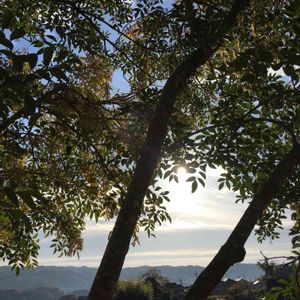 朝日とシマトネリコ 夏は日差しを遮ってくれ、いい香りの白い花が咲きます!